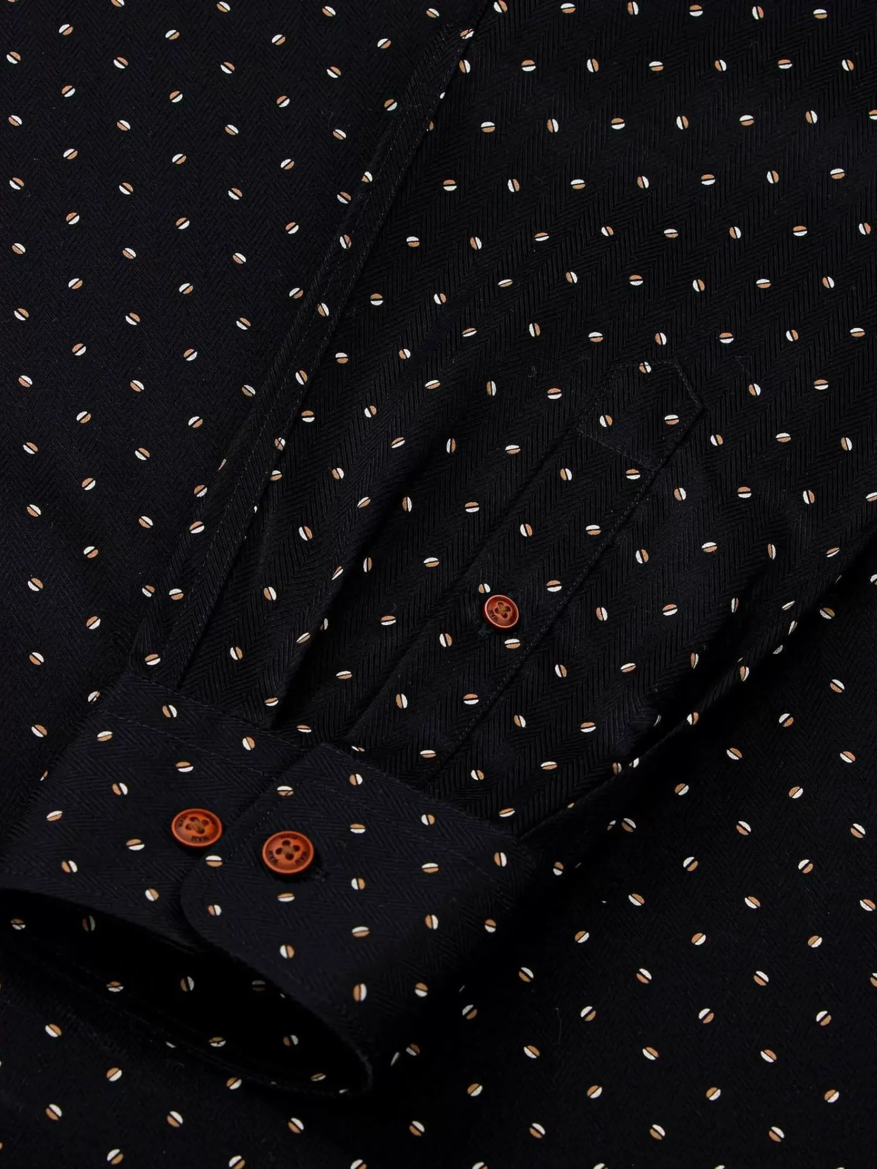 Wam Denim Verdantia Coffee Bean Pattern Black Overhemd Lange Mouw| Overhemd Lange Mouwen