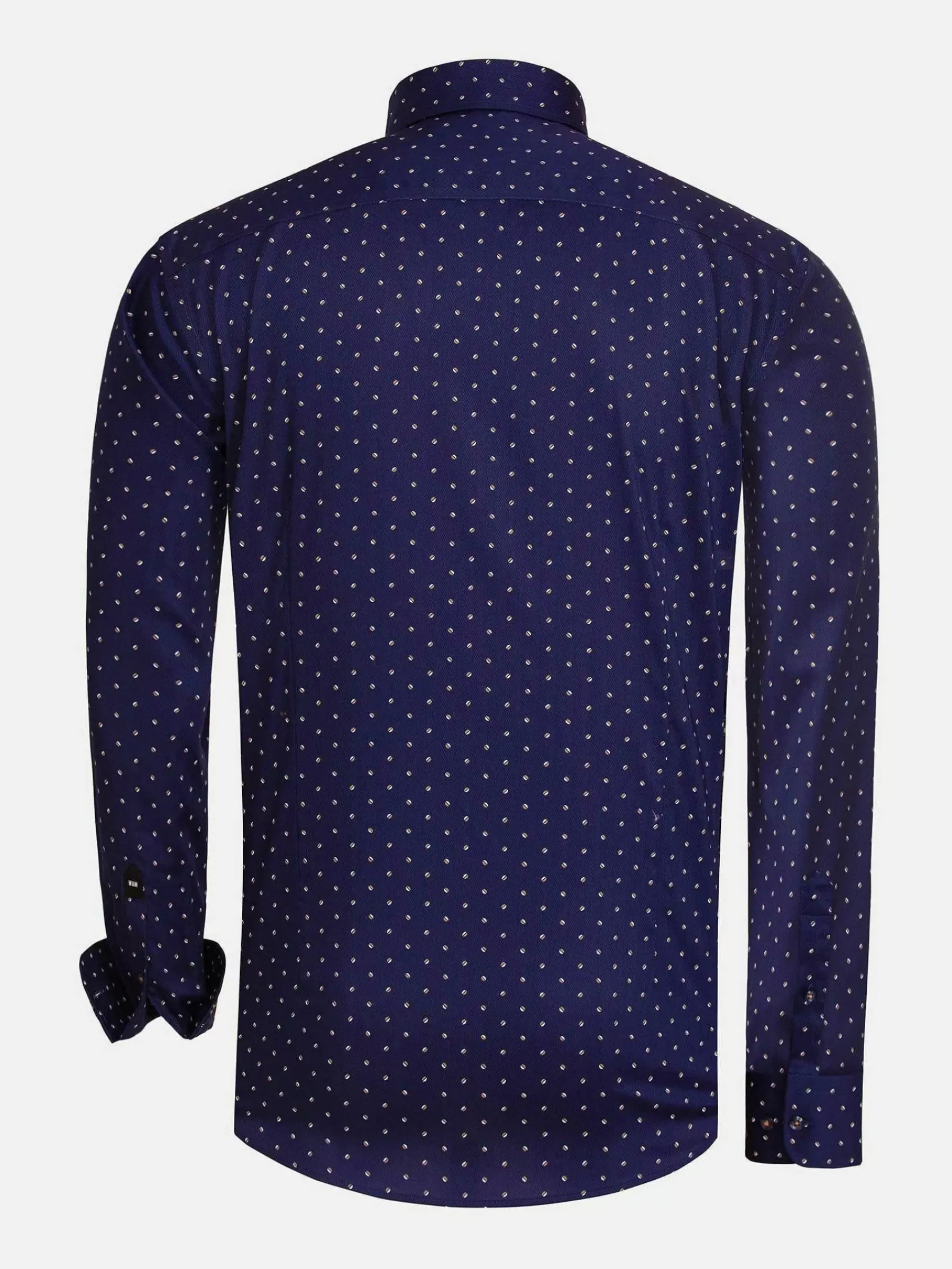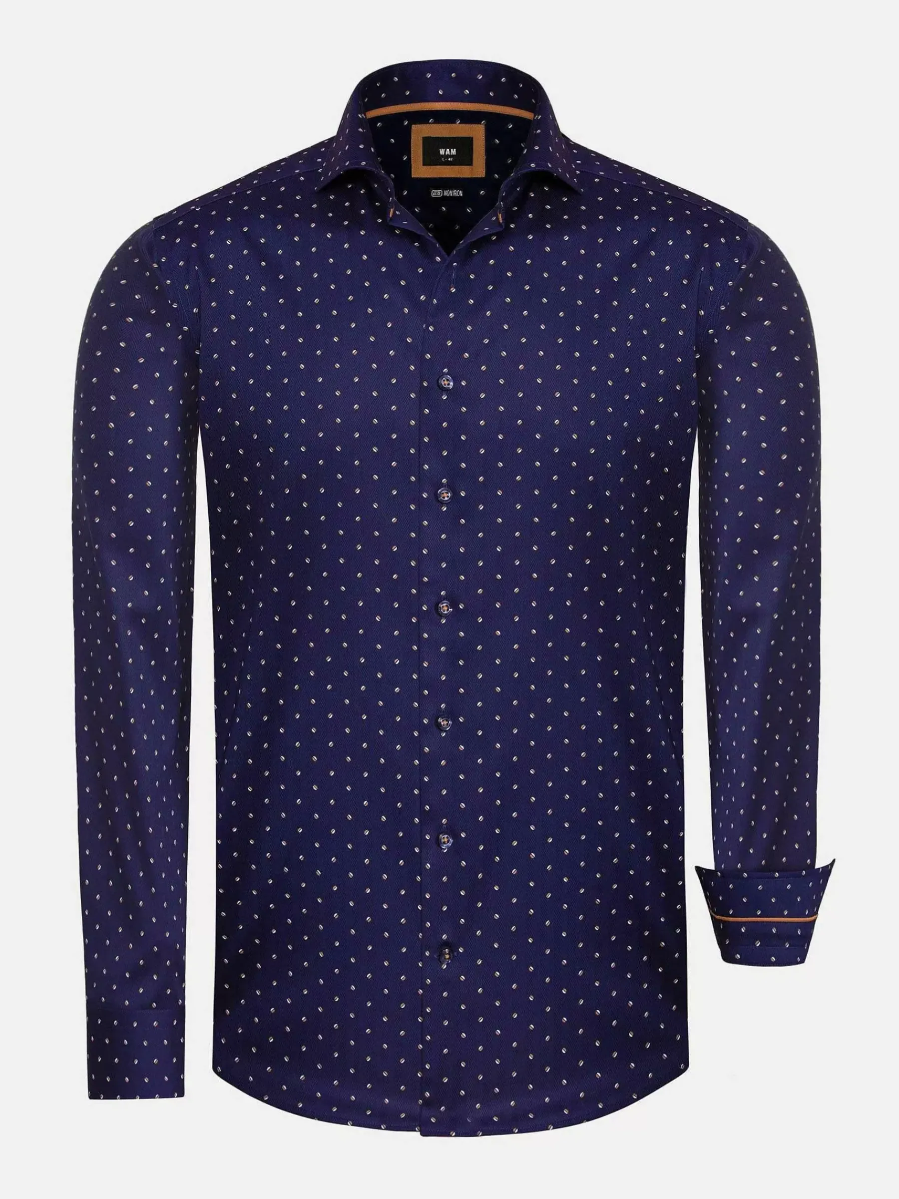 Wam Denim Verdantia Coffee Bean Pattern Navy Overhemd Lange Mouw| Overhemd Lange Mouwen