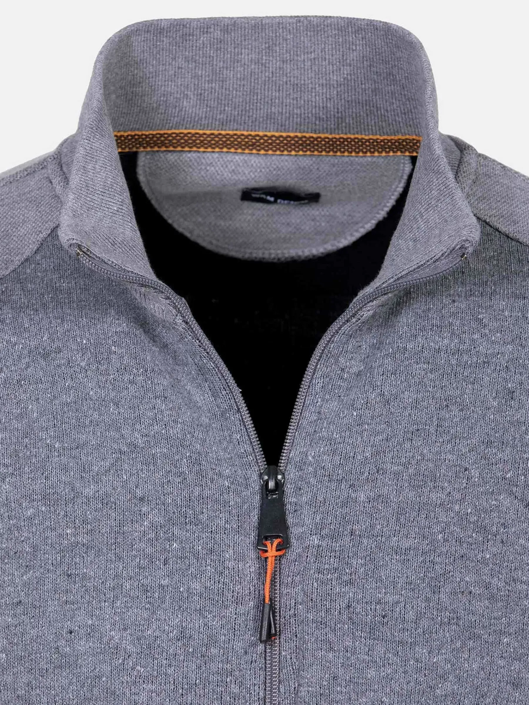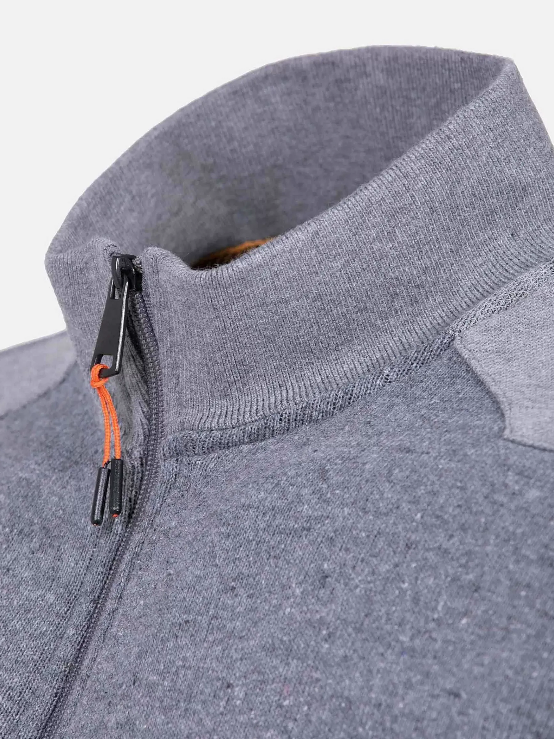 Modieus Grijs Vest Met Opstaande Kraag En Een Ritssluiting. Het Vest Heeft Twee Zijzakken En De Bovenarmen, Schouder En Kraag Is Lichtgrijs Gekleurd En Geeft Een Mooi Effect.