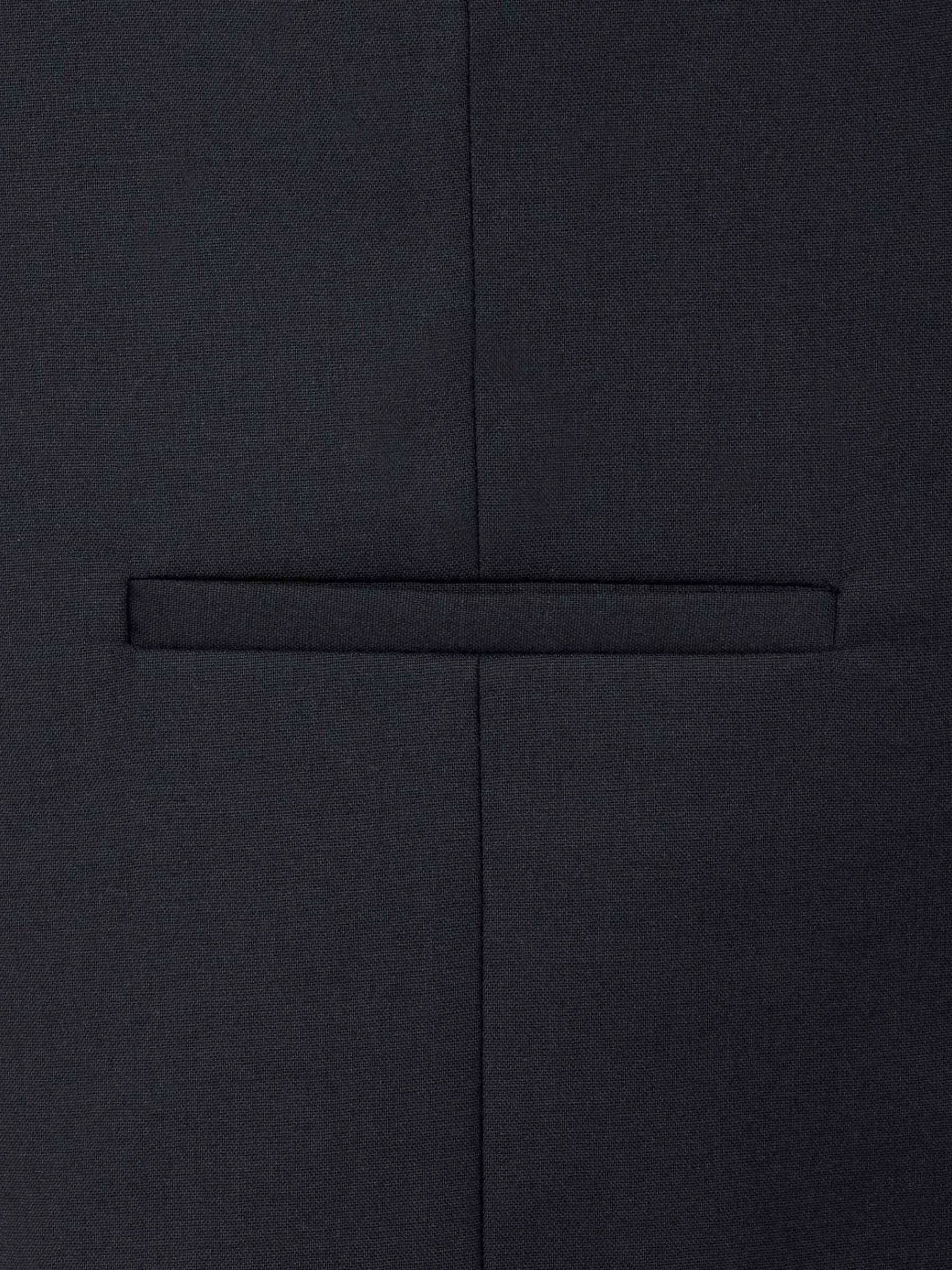 Vittorio Navy Vesten. De Jas Heeft Een Slanke Pasvorm, Een Rekbare Stof Voor Comfort, Twee Kleine Horlogezakken En Een Stijlvolle Sluiting Met Vijf Knopen. Verfraai Je Ensemble Met Tijdloze Elegantie.