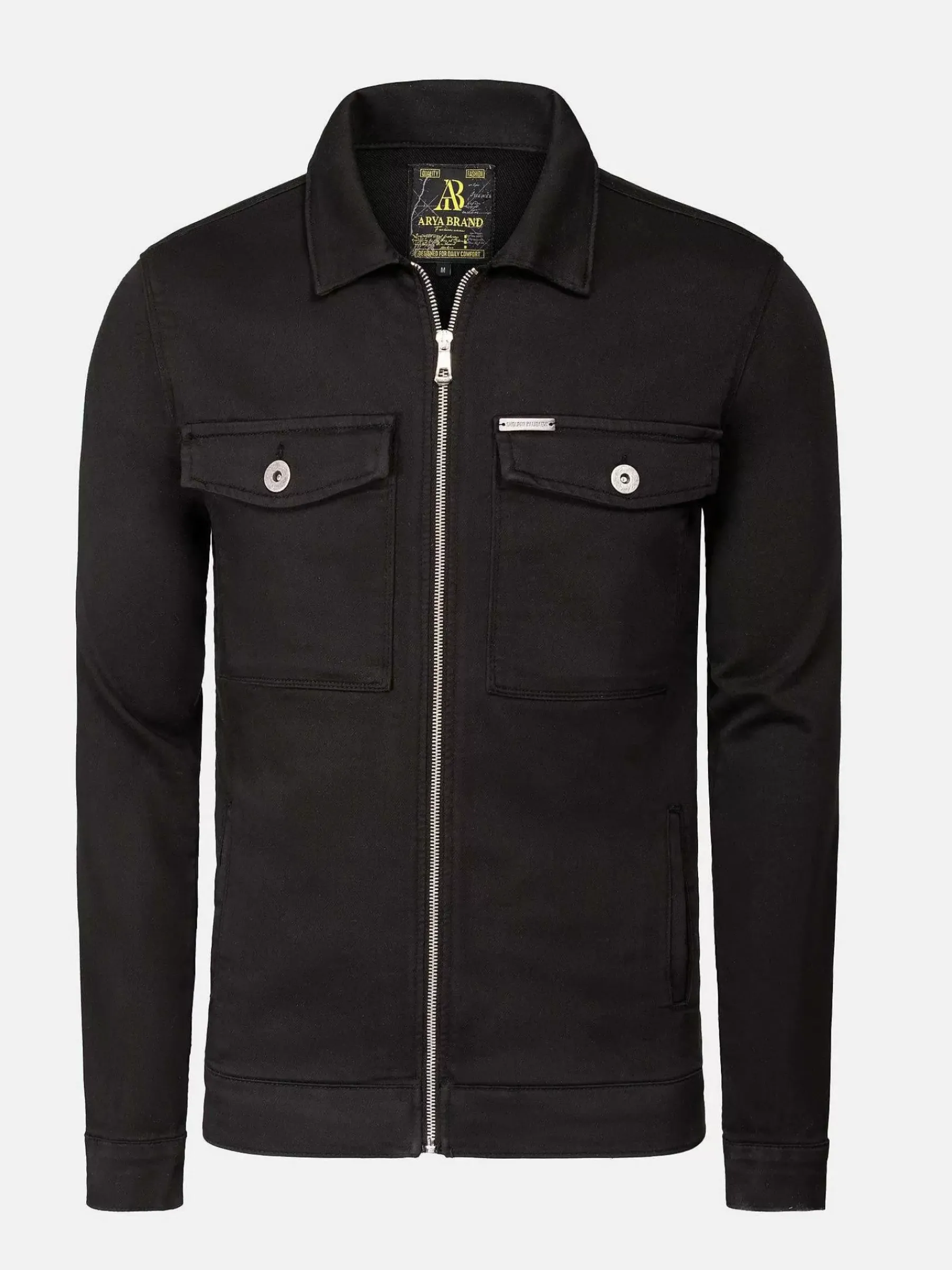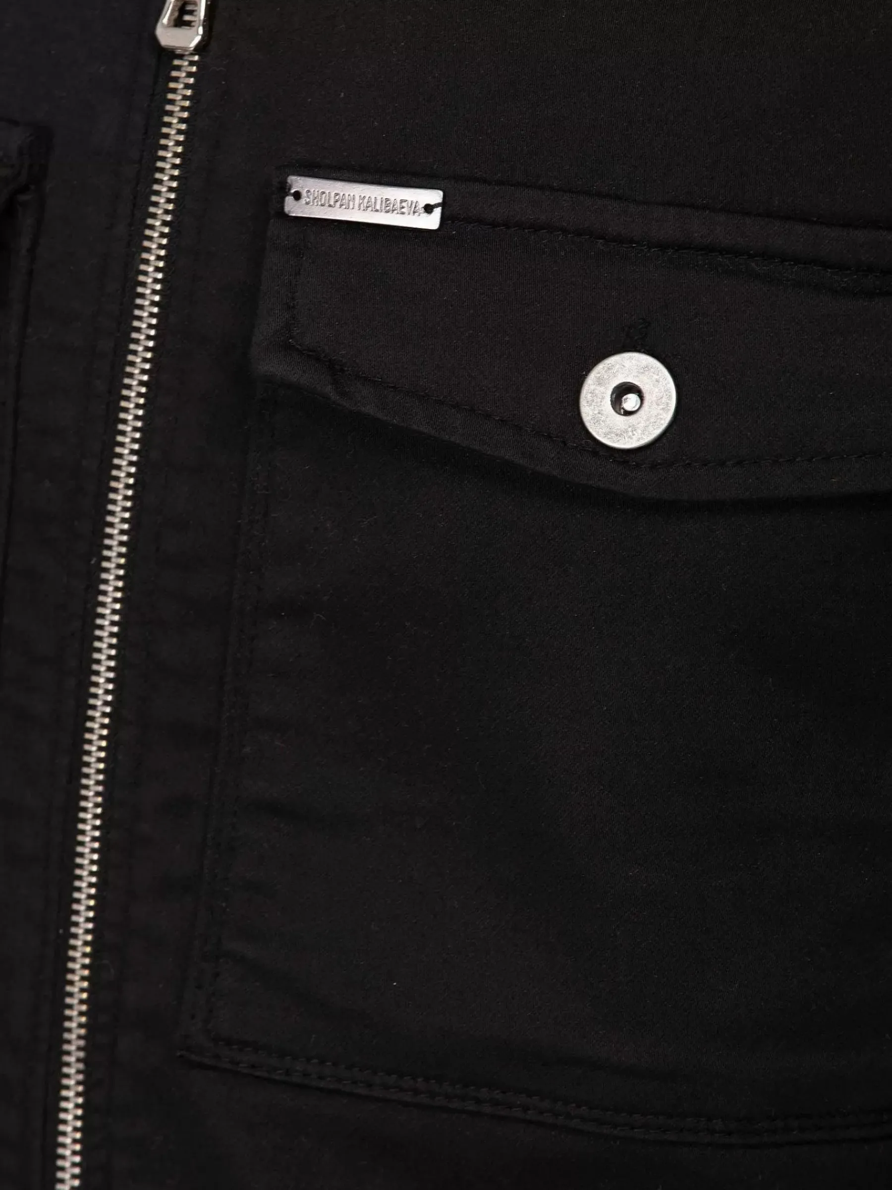 Zwarte Jas Met Lange Mouwen En Ritsluiting. Dit Model Heeft Twee Zijzakken En Twee Borstzakken.